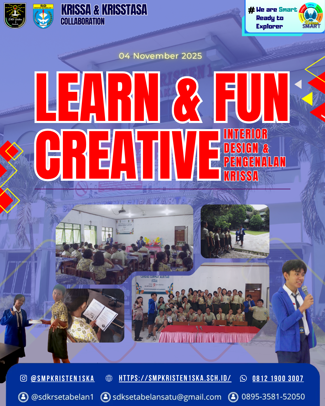 SMP Krissa disini mengajarkan beberapa Teknik Desain Interior 3D kepada para Murid SD Kristen Setabelan 1 Surakarta , dan juga pengenalan beberapa fasilitas SMP Krissa.