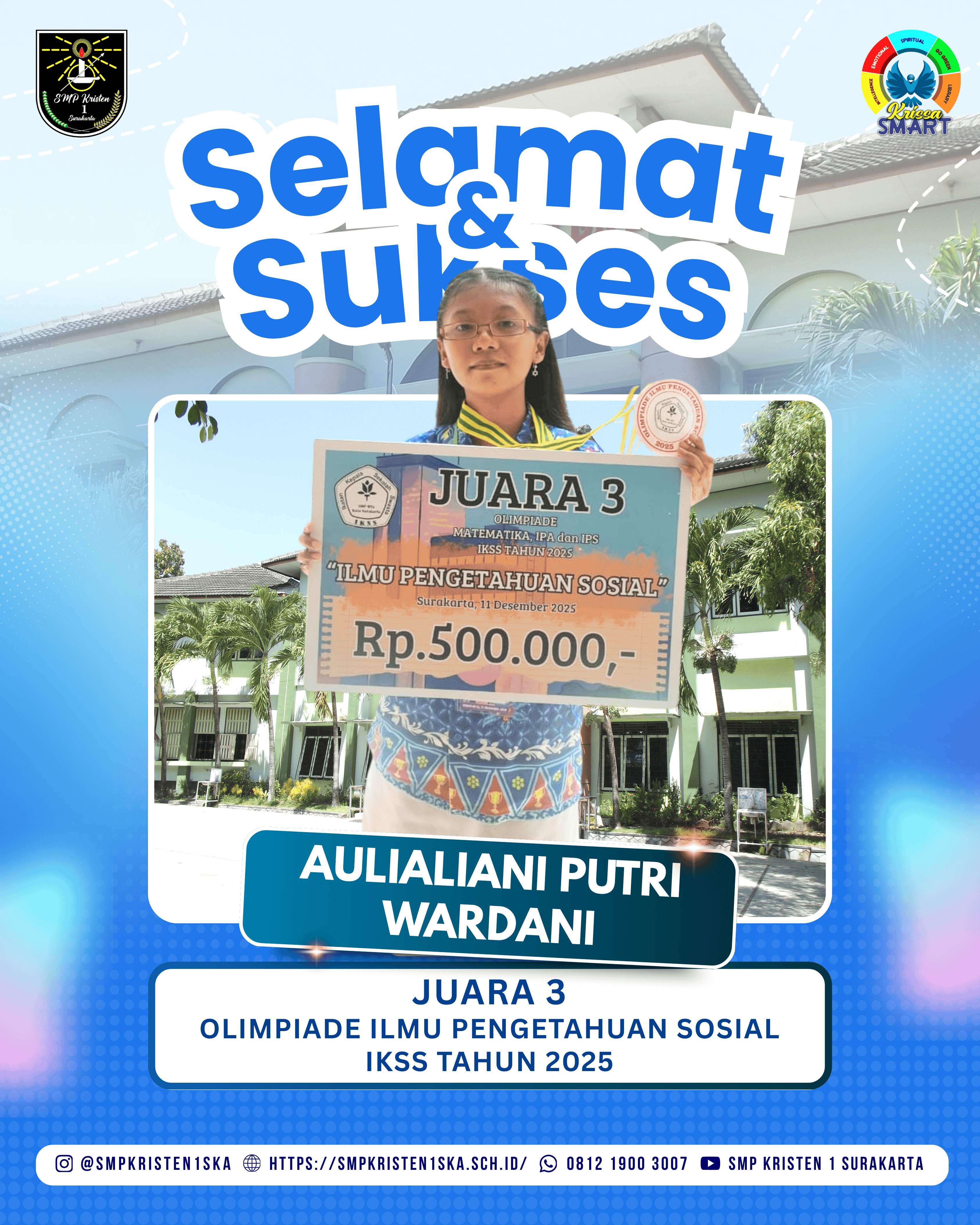 Selamat dan sukses untuk Ananda Aulialiani Putri Wardani 8B